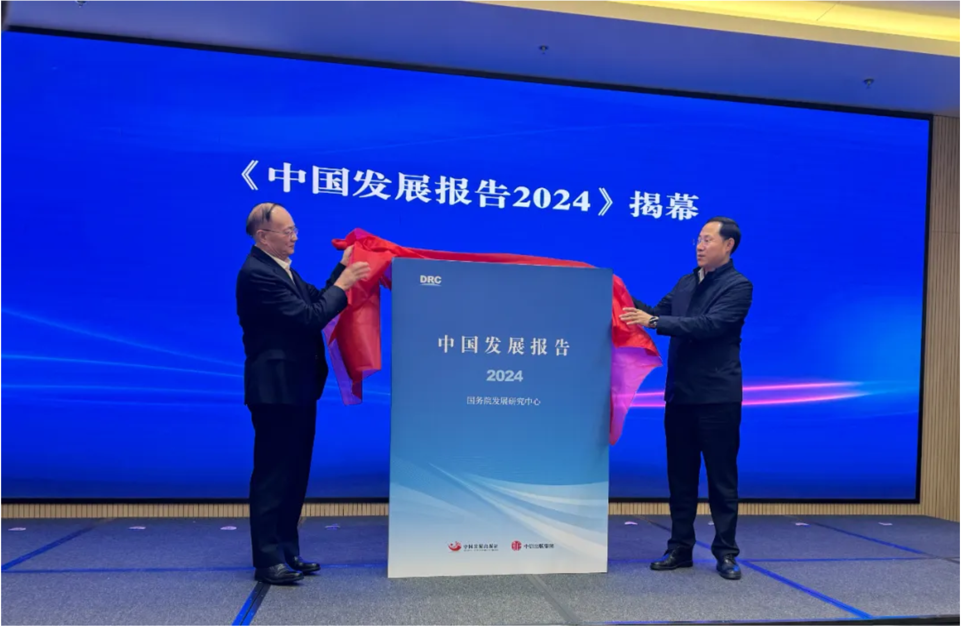 第十四届全国政协委员、国务院发展研究中心原副主任余斌(图左)与沈阳市委常委、副市长、党组成员吴廷宝(图右)共同为《中国发展报告2024》揭幕。